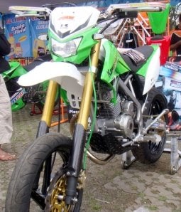 Klx 150 L Modif Supermoto. DATA kalau modif motor trail ke gaya supermoto perlu ubahan gearset agar tetap nyaman di pakai di jalan raya. jika gear depan tetap. nambah mata gear belakang sama dengan. Pakai hanya Hari sabtu Minggu saja warawiri ke tempat teman. servis rutin dealer Kawasaki oli full syntetic. ban masih bawaan motor.