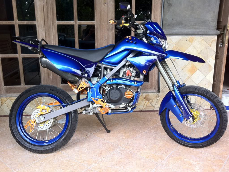 Modifikasi Klx 150 Warna Hijau. Pada modifikasi ini, Kawasaki klx menjadi sangat menarik dengan model stripingnya. Motor ini telah dilengkapi sederet aksesoris resmi, serta warna bodi yang Sementara warna yang disediakan merupakan kombinasi hitam dan hijau.